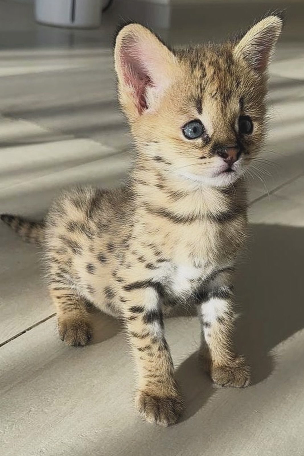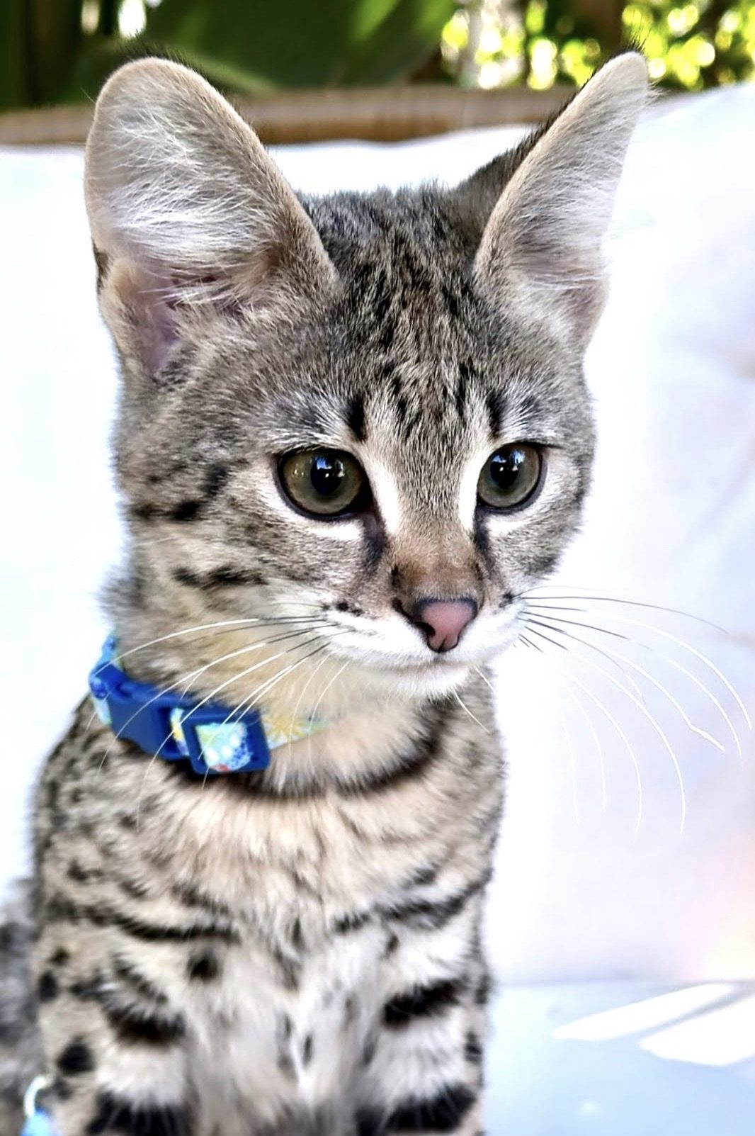 - F1 Savannah — the very first generation, where one parent is an African Serval. These kittens can carry up to 50% wild DNA, which makes them noticeably larger, with striking coats and exotic looks. They are intelligent, energetic, and extremely rare.